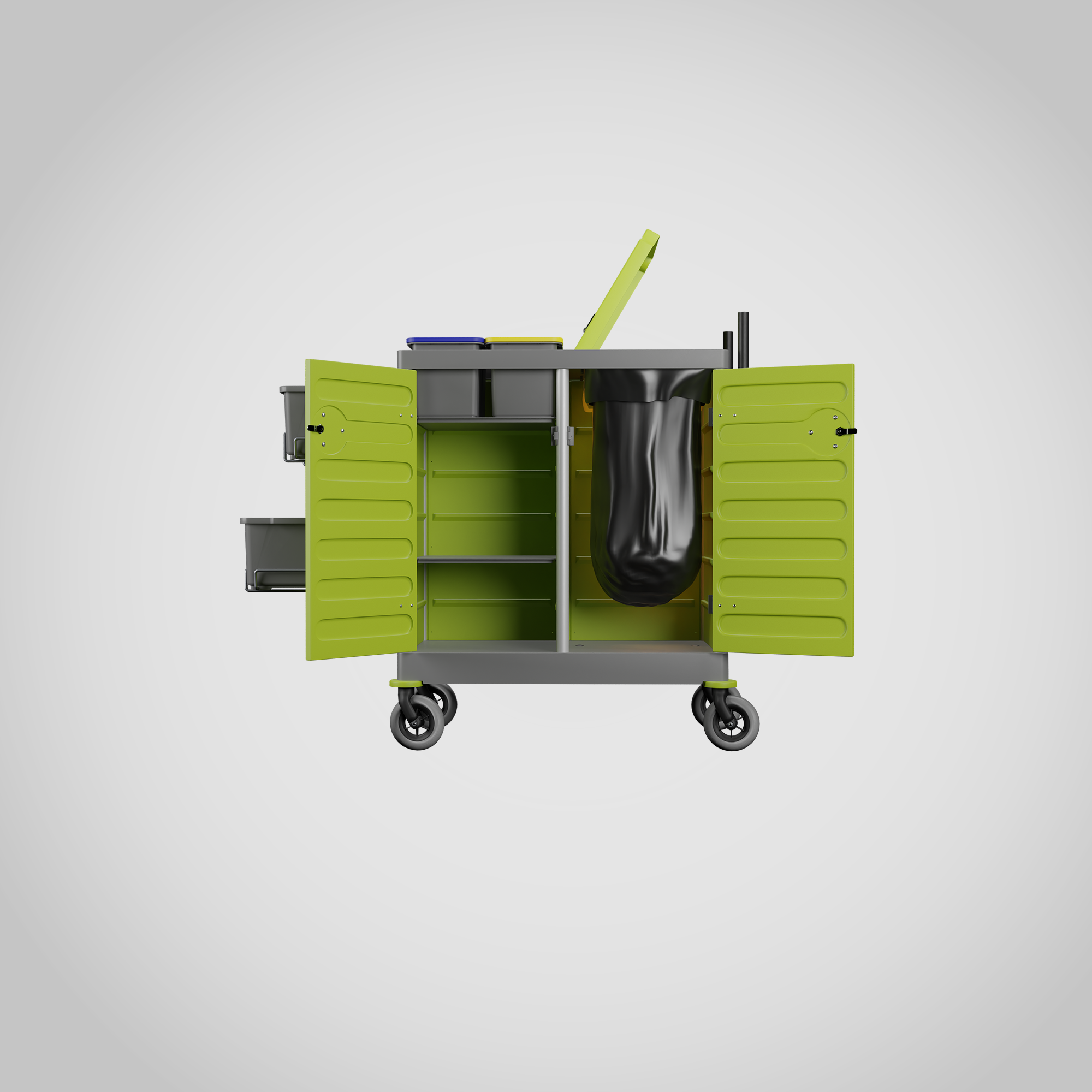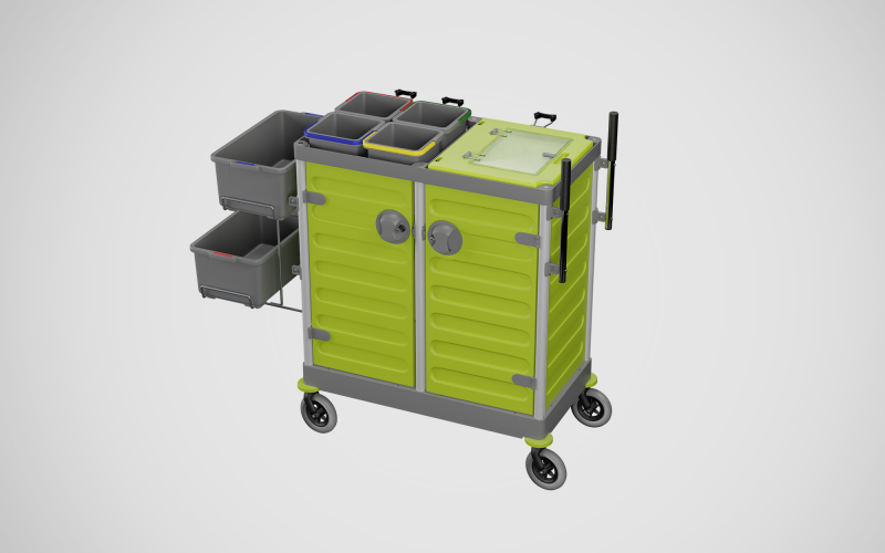 Cart trolley with a lockable door, capable for strong loads thanks to its internal shelves.