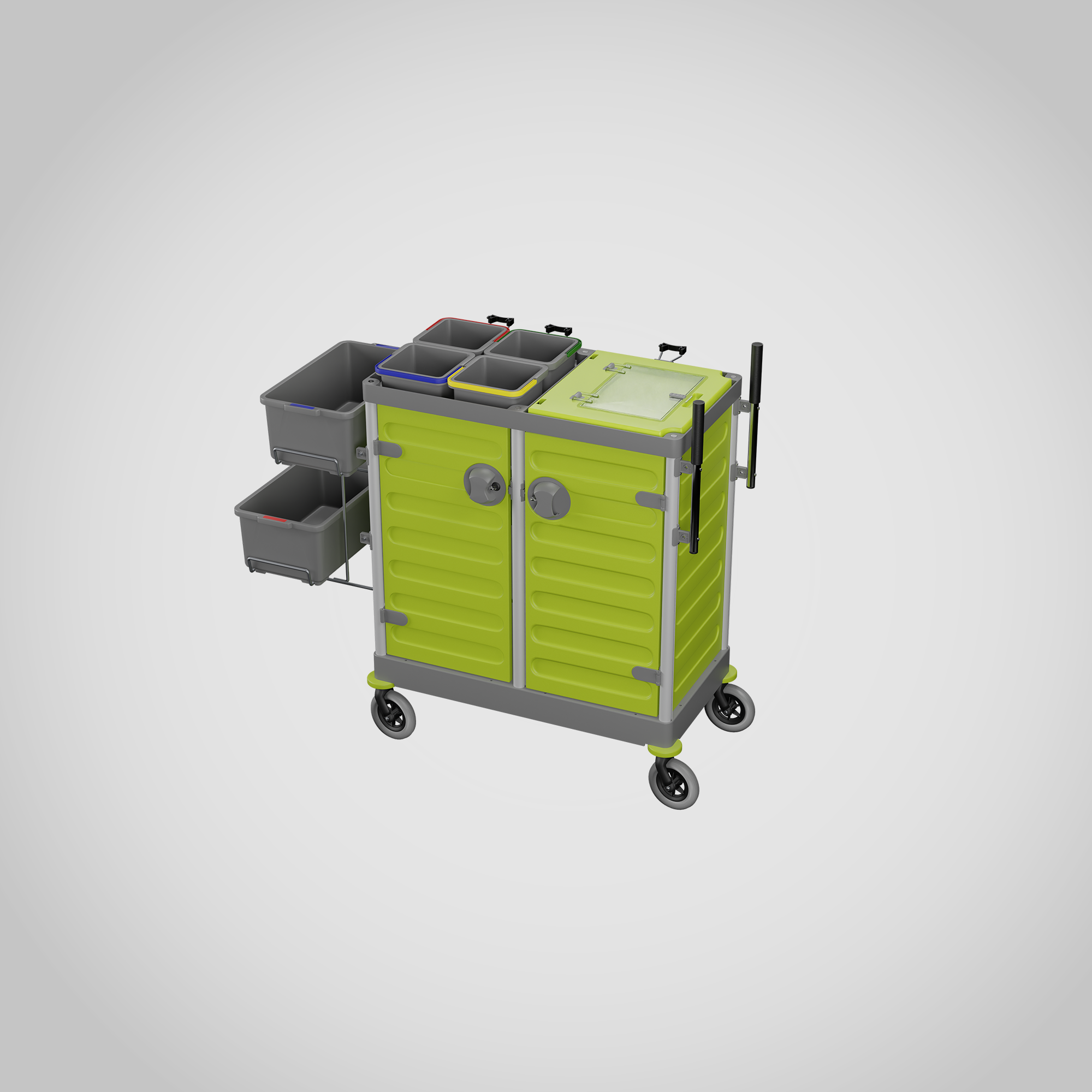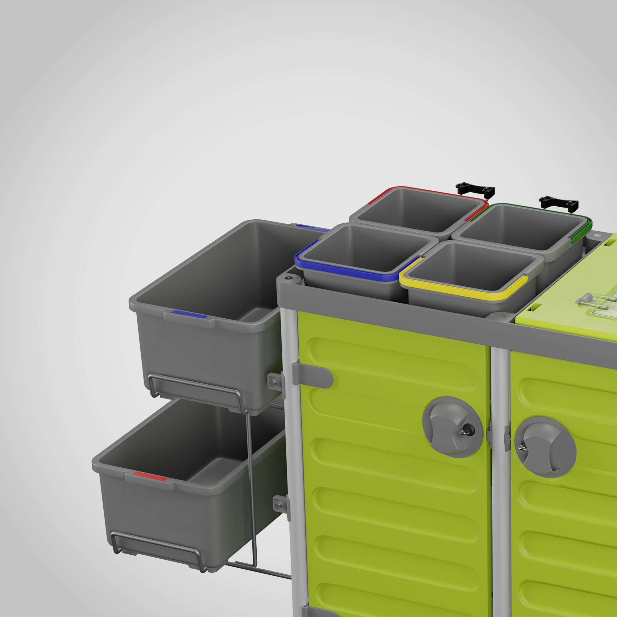Four buckets are available, equipped with a resealable lid and key.